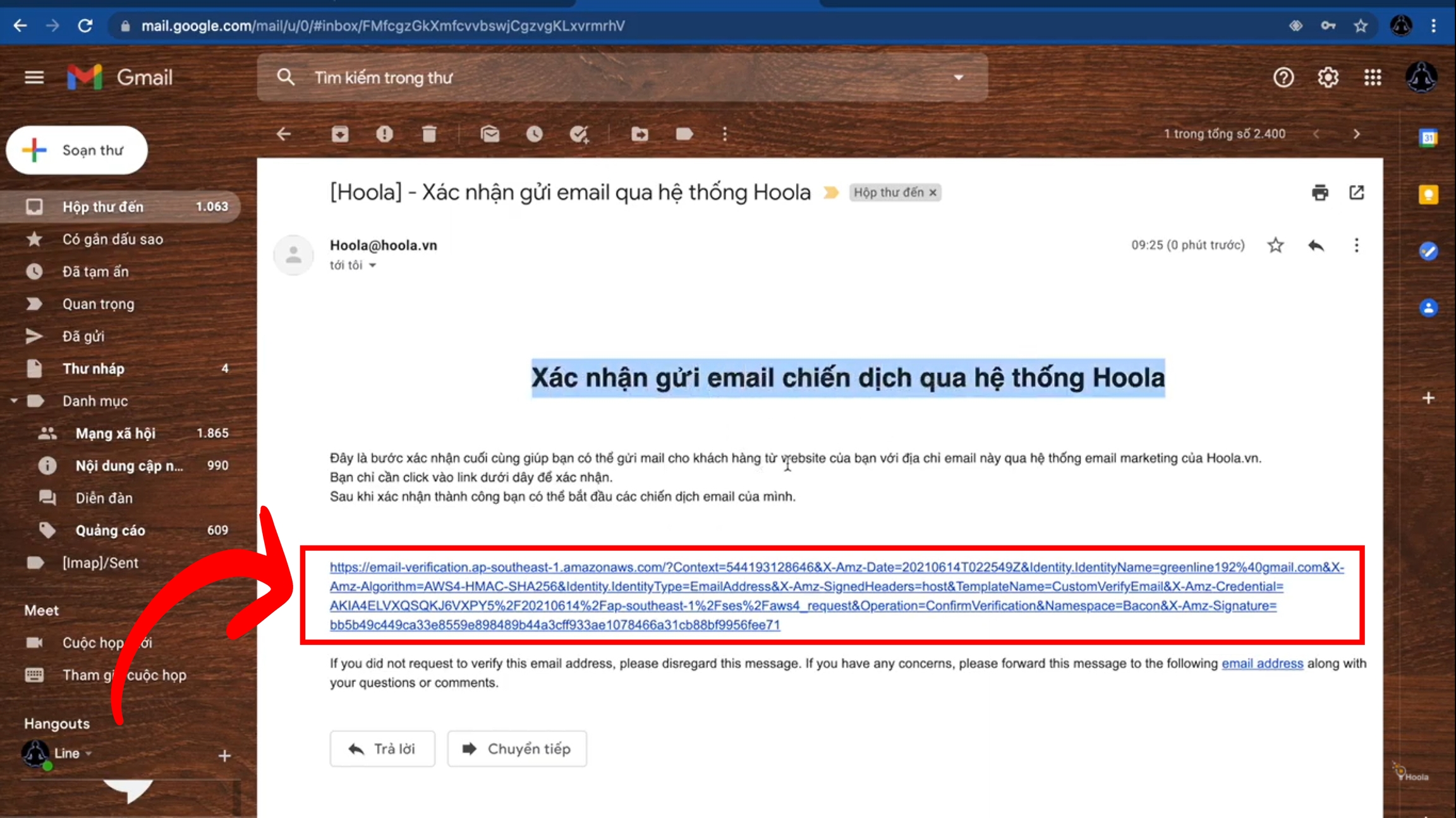 Quản trị viên chỉ cần click vào link gửi kèm trong Email là xác nhận thành công.