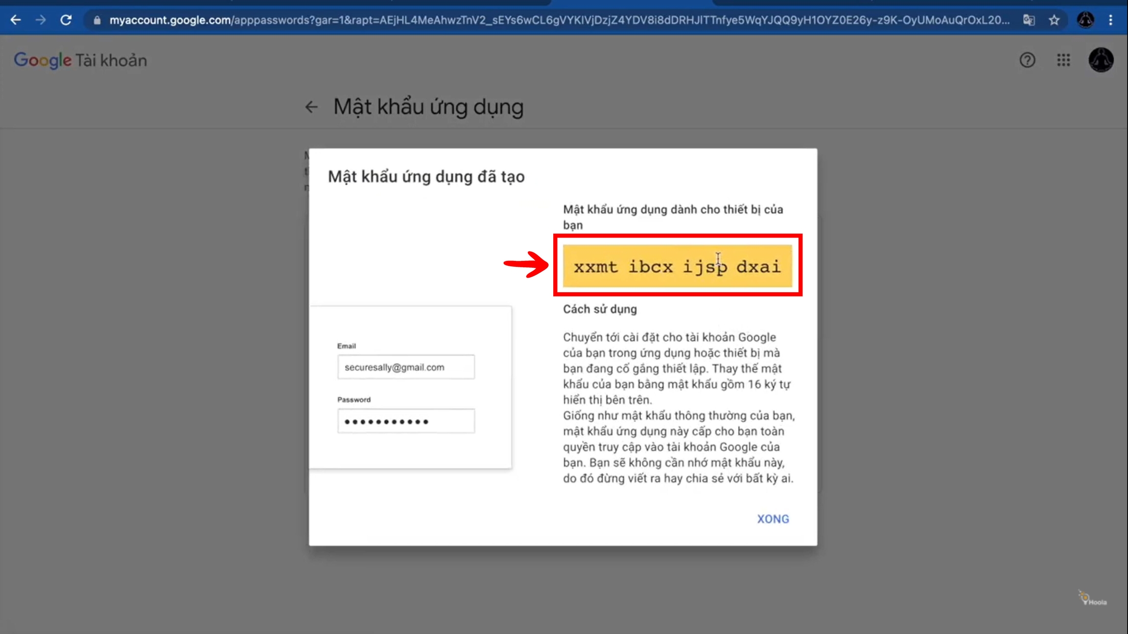 Làm theo hướng dẫn để nhập Mật khẩu ứng dụng. Mật khẩu ứng dụng là mã gồm 16 ký tự trong thanh màu vàng trên thiết bị.