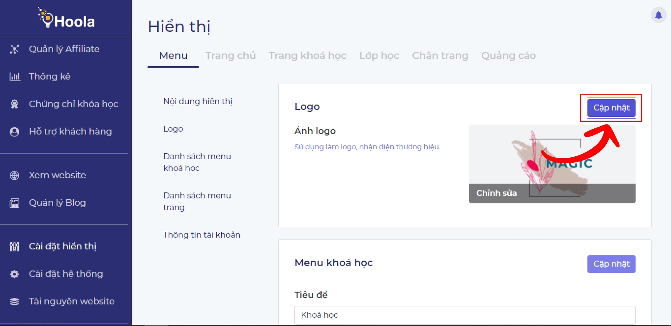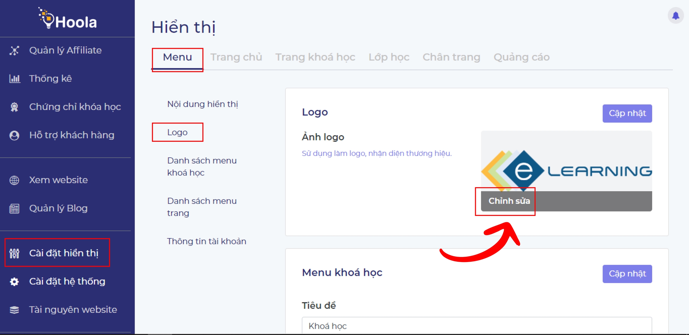 Vào Cài đặt hiện thịMenuLogoChỉnh sửa