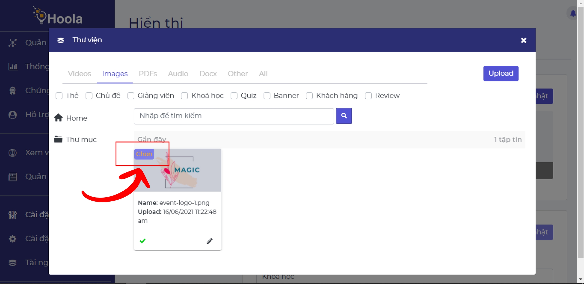 Nhấn Chọn để đưa hình ảnh ra ngoài