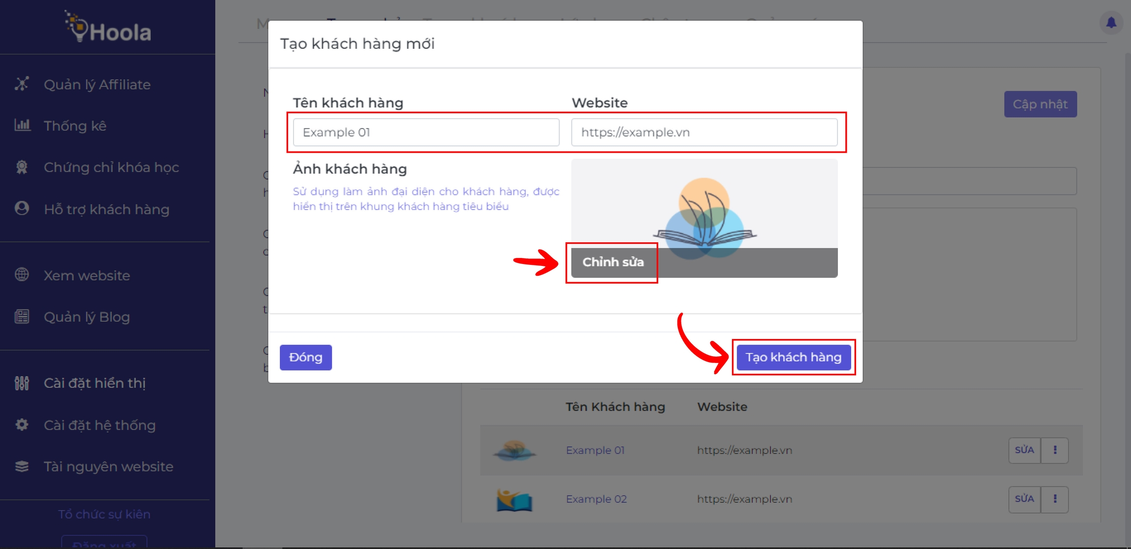 Thay đổi nội dung và nhấn Tạo khách hàng là hoàn thành.