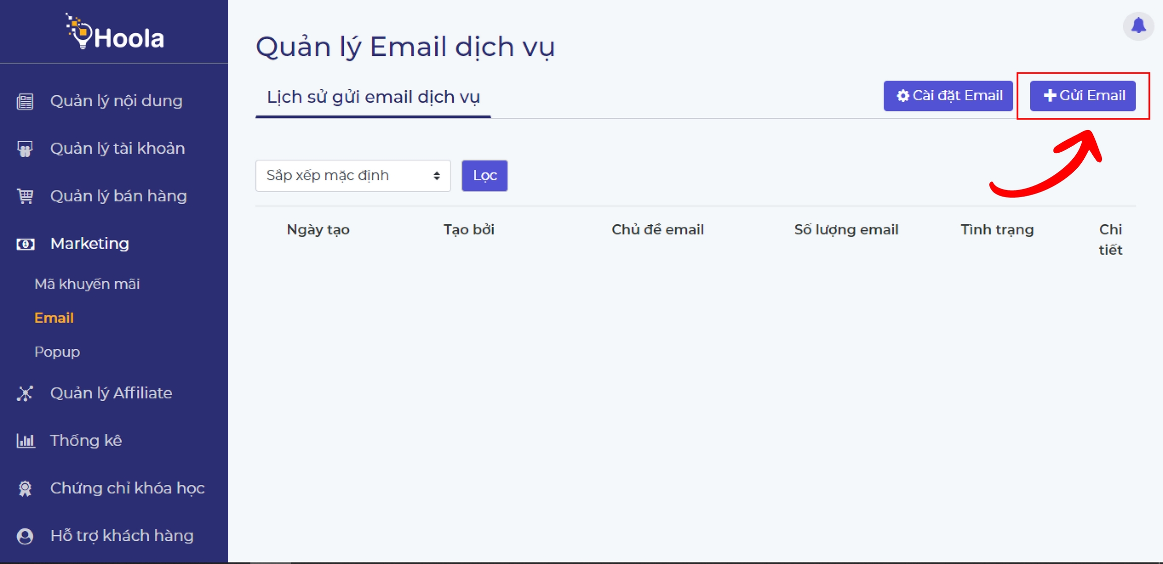 Sau khi đã cài đặt Email xong, quản trị viên sẽ quay lại và tiến hành gửi email.