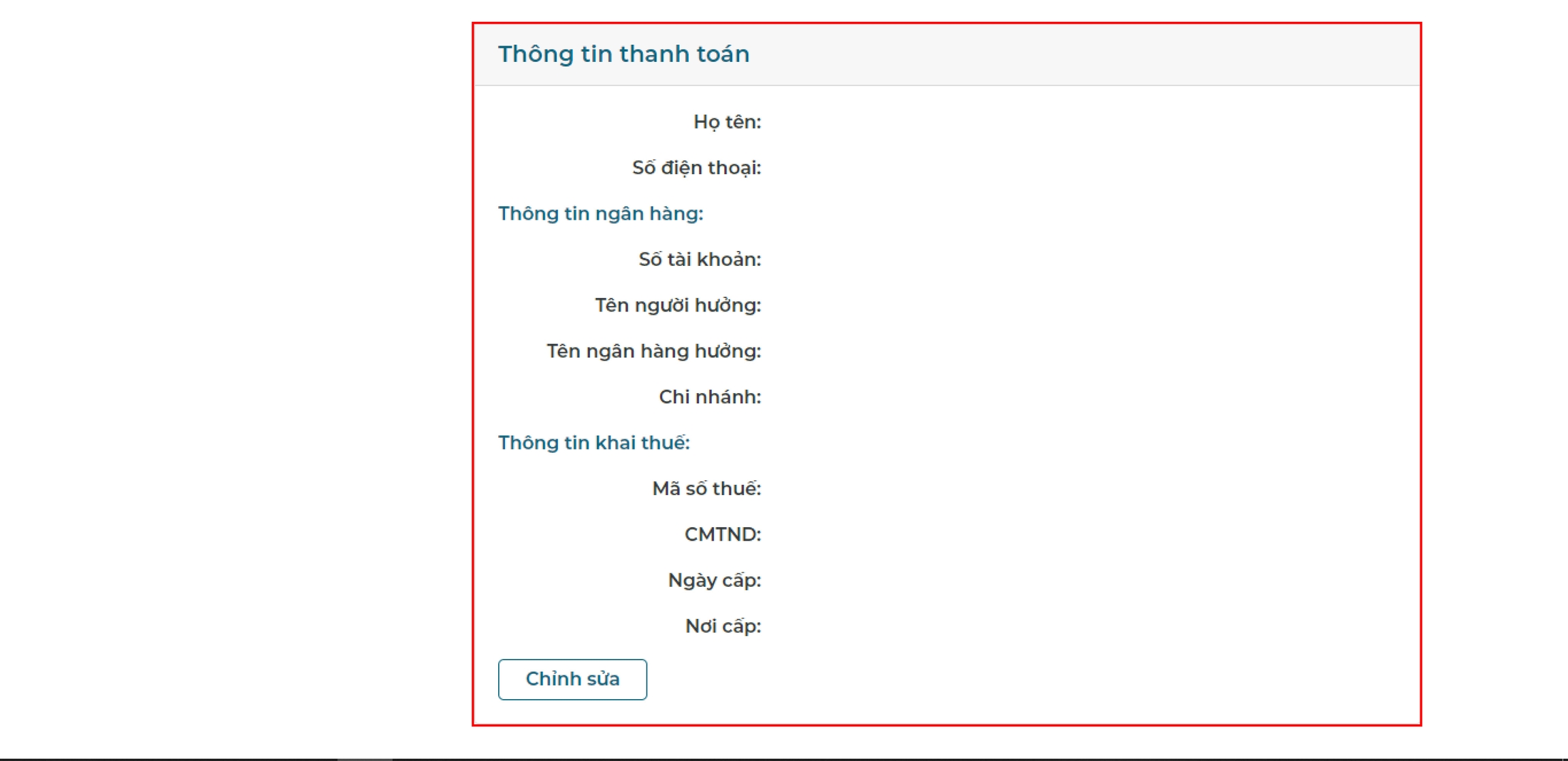 Và thông tin tài khoản của học viên để trong trường hợp muốn thanh toán luôn thì web sẽ chuyển khoản được