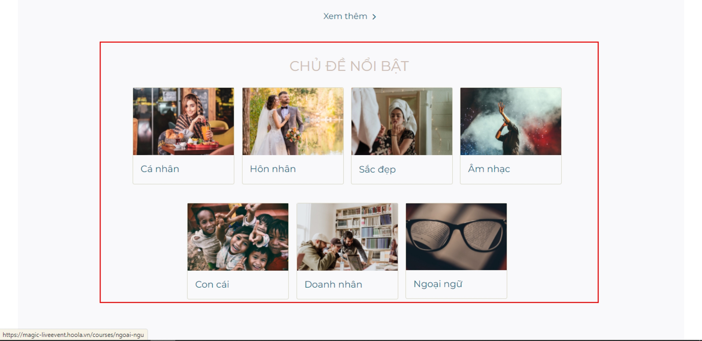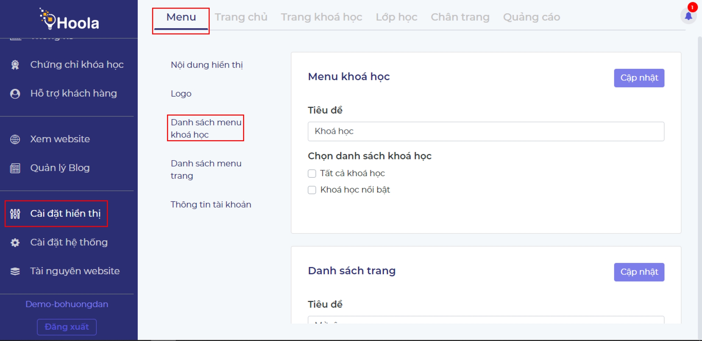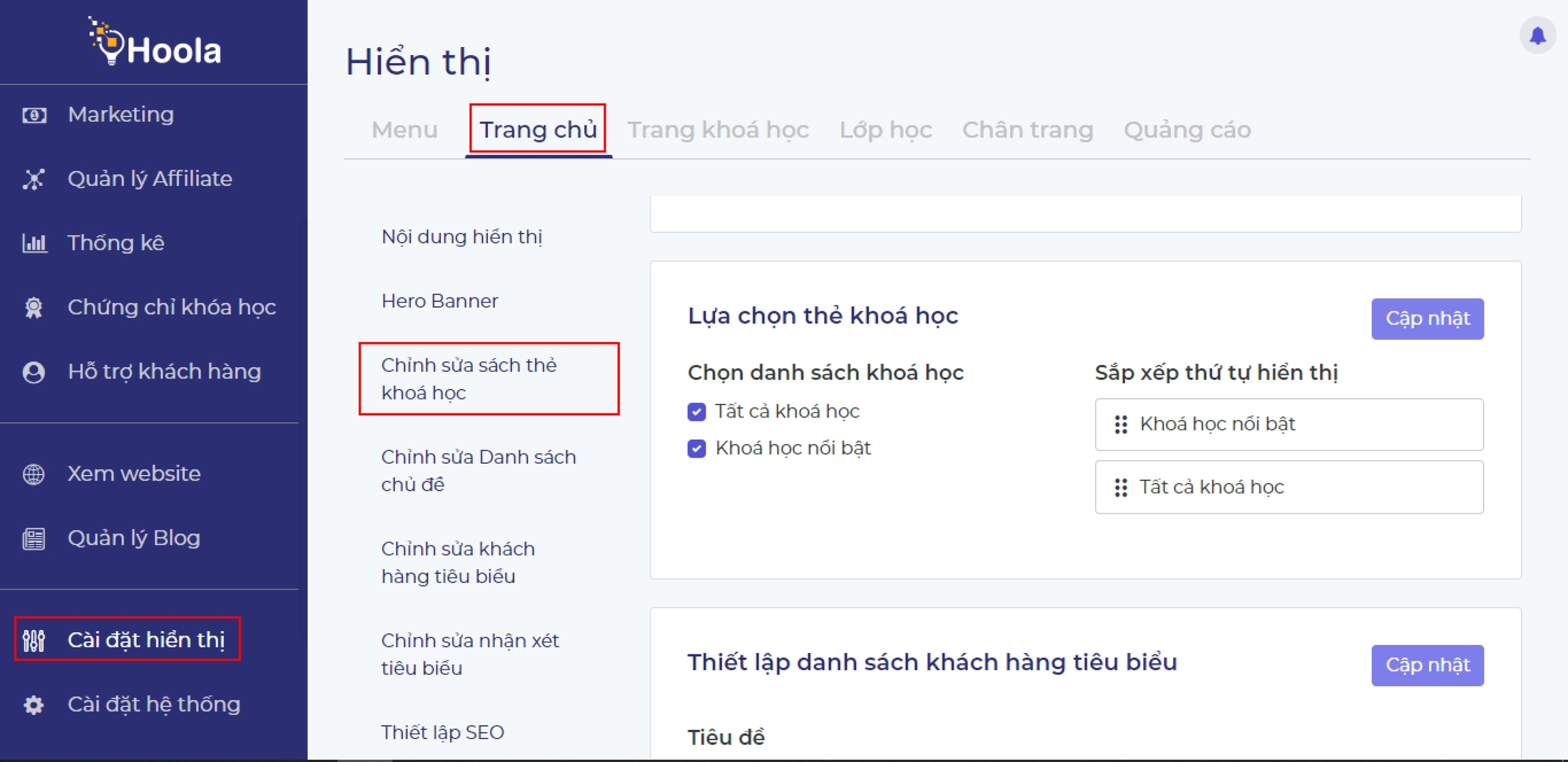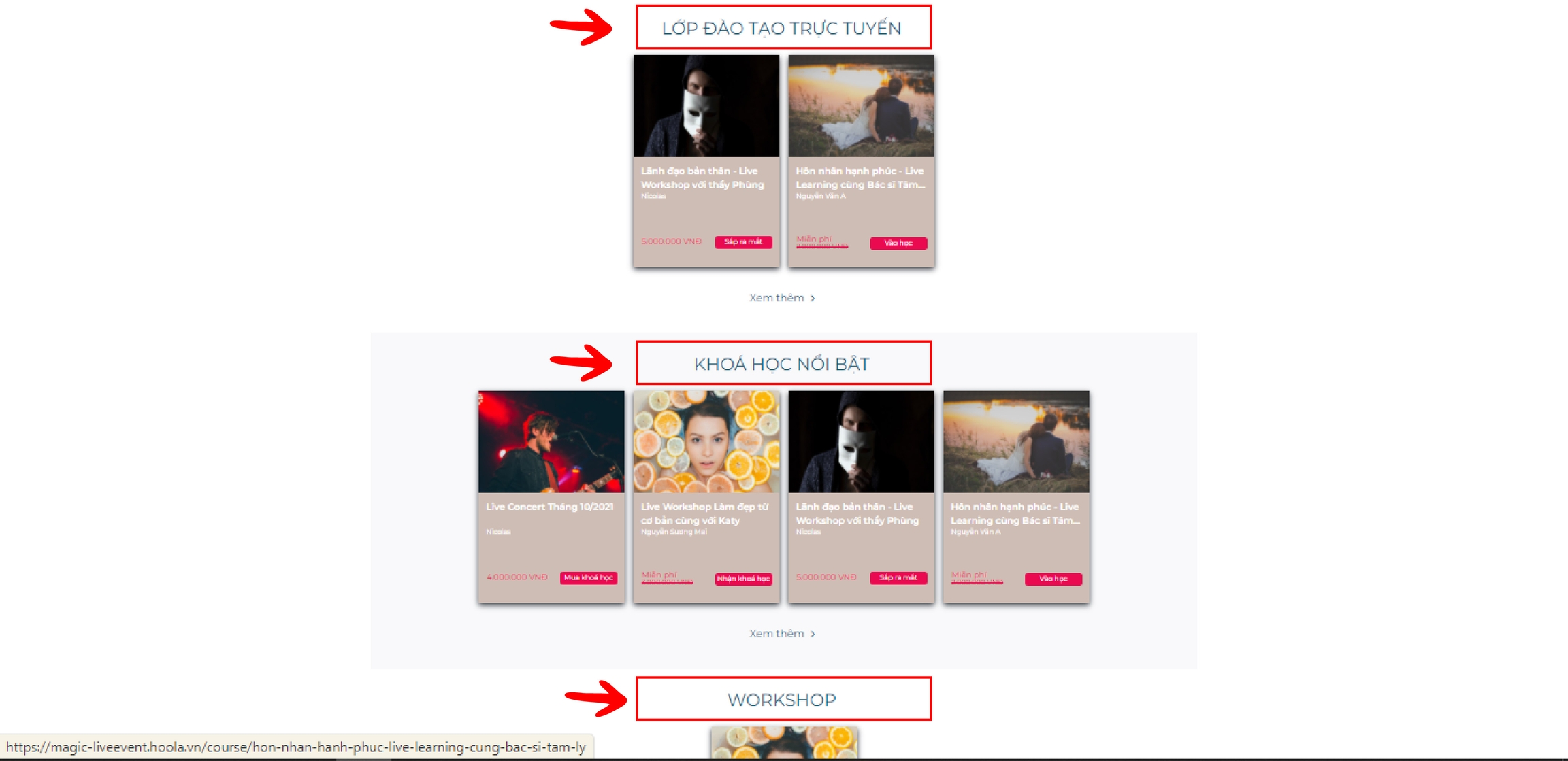 Hiển thị khóa học trên Web để học viên nhìn thấy