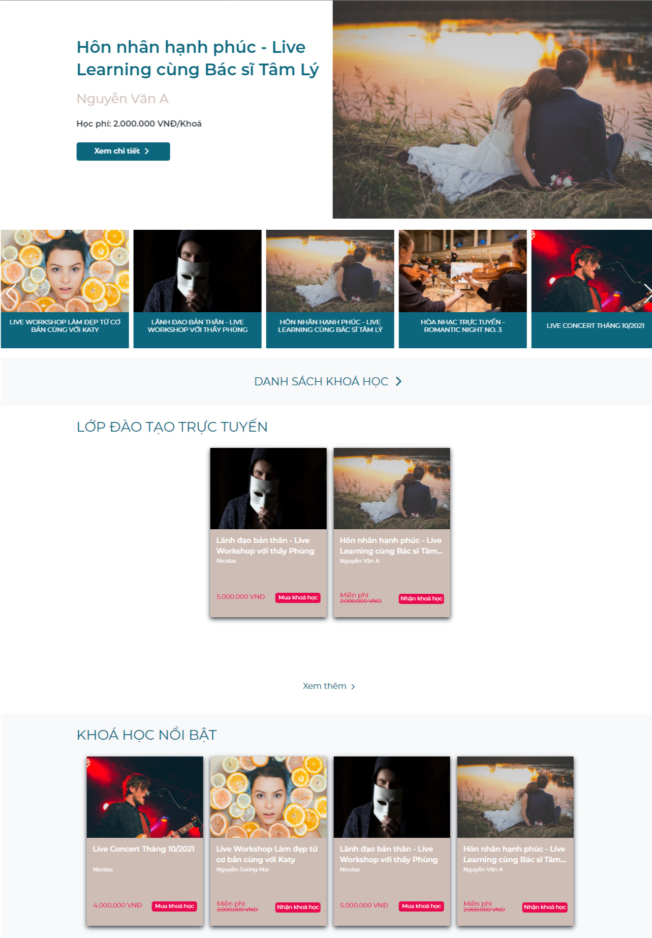 Hiển thị khóa học trên Web để học viên nhìn thấySau khi tạo các khóa học thành công, web sẽ hiển thị như sau (một ví dụ quản trị web có thể tham khảo)