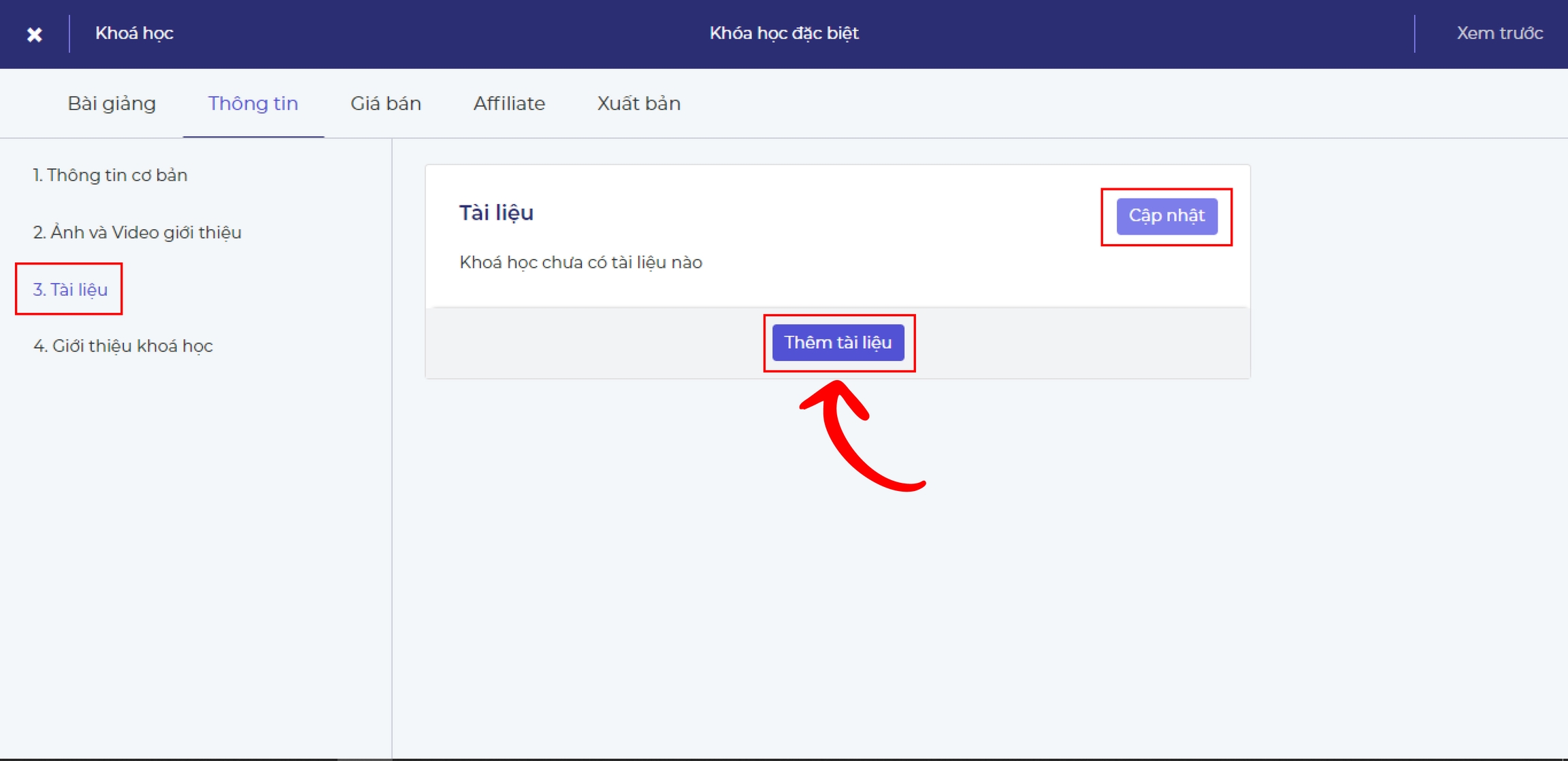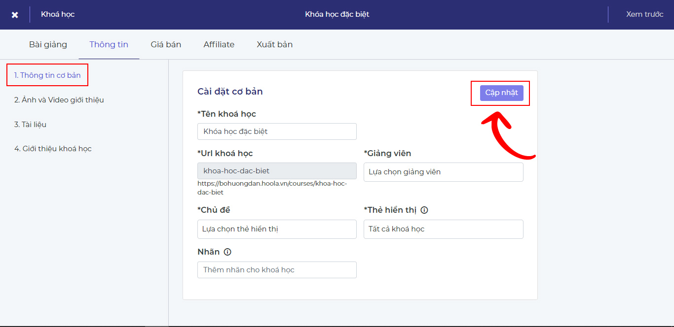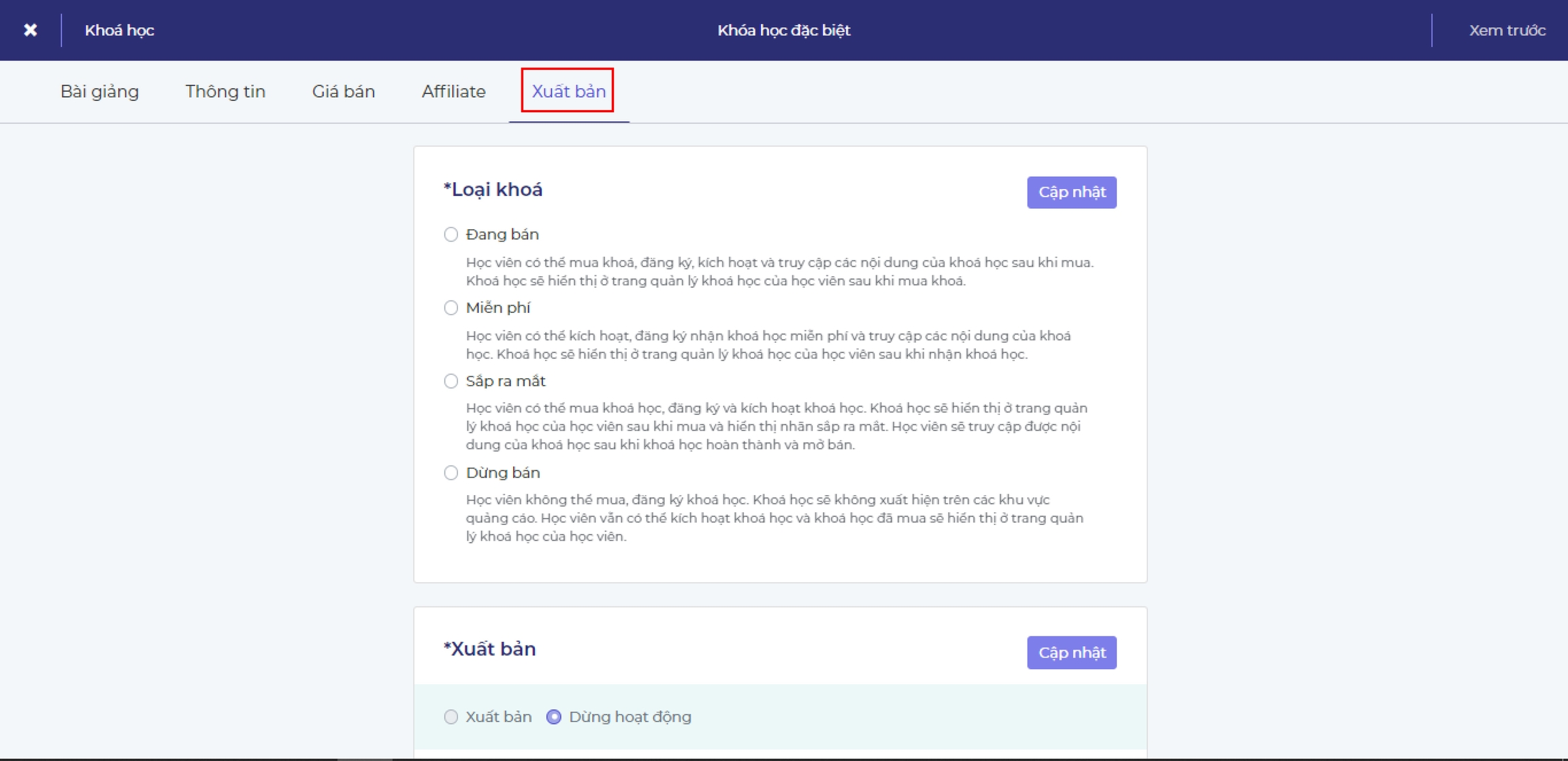 Cuối cùng, nhấn Xuất bảnCập nhập để nội dung khóa học được hiển thị lên trang chủ.