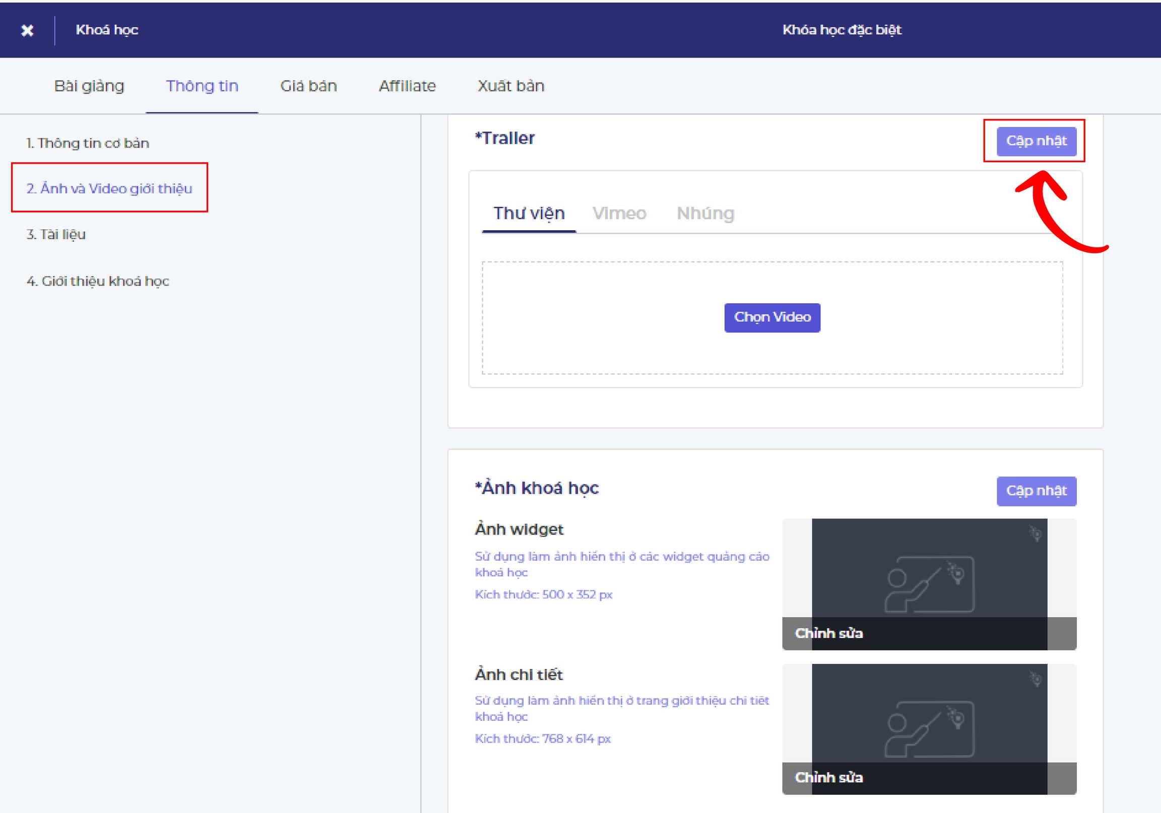 Ảnh và Video giới thiệu giống như một phần Trailer cho học viên, hiển thì cùng với Thông tin cơ bản ở trên