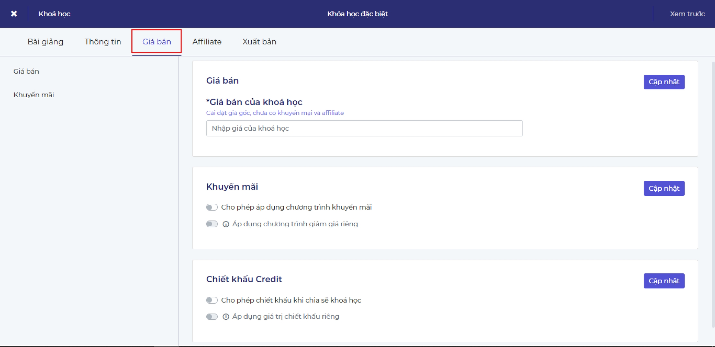 Khuyến mãi: Đây là giá thực mà khách hàng mua bán, chính vì vậy thường khách hàng sẽ đẩy giá gốc phía trên cao lên