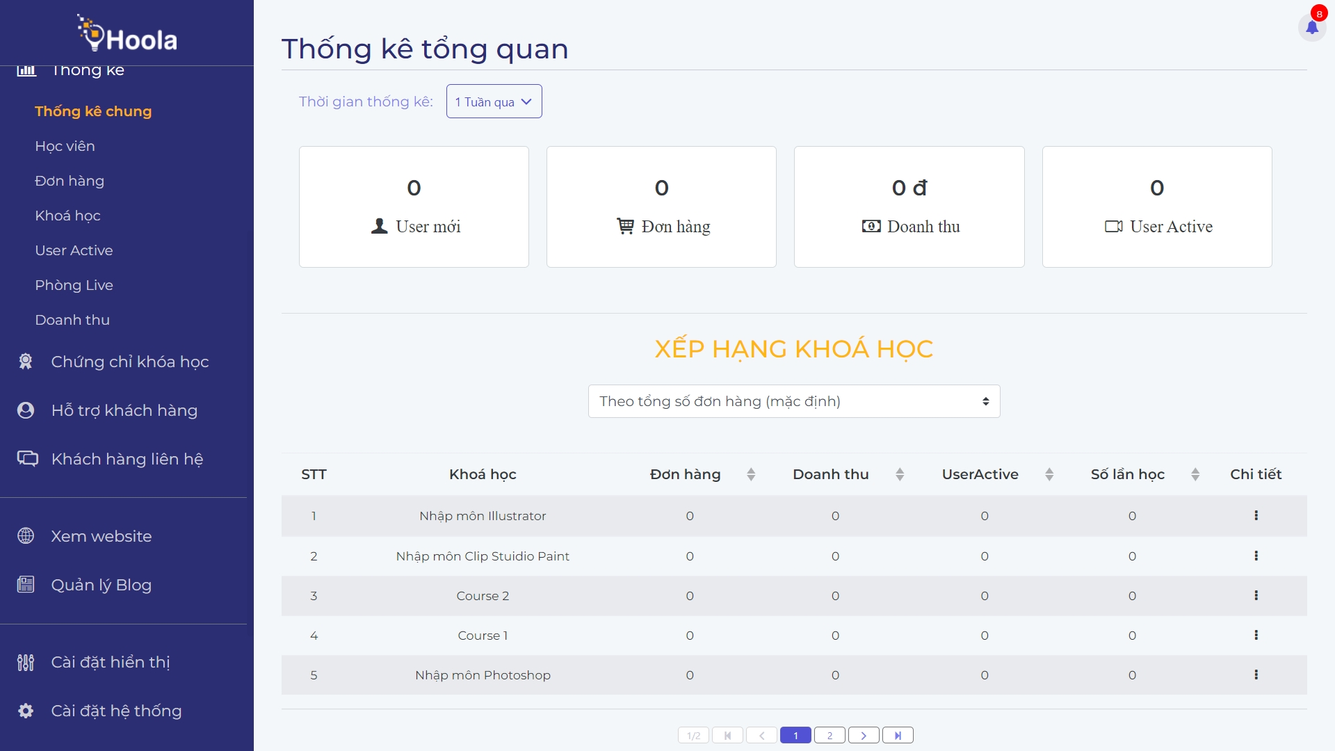 Thống kê Thống kê chung sẽ hiện các thông tin như dưới đây: