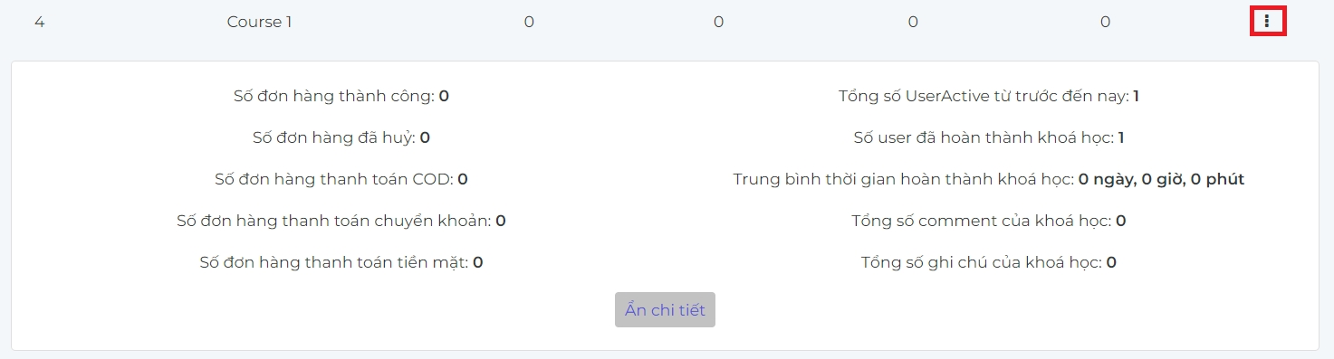 Nhấn nút ... ở bên cạnh mỗi khóa học để xem chi tiết cho mỗi khóa học.